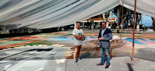 In Tacoronte entsteht derzeit auf der Plaza del Cristo der traditionelle Teppich aus Blüten, Samen und farbigem Sand. Am Sonntag wird dort das Corpus Christi Fest gefeiert. Tacoronte war übrigens die einzige Gemeinde auf den Kanarischen Inseln, die diese Tradition auch während der Pandemie aufrecht erhalten hatte. Aber in diesem Jahr wird ganz besonders gefeiert: Der Teppich verkündet die Botschaft des Friedens.