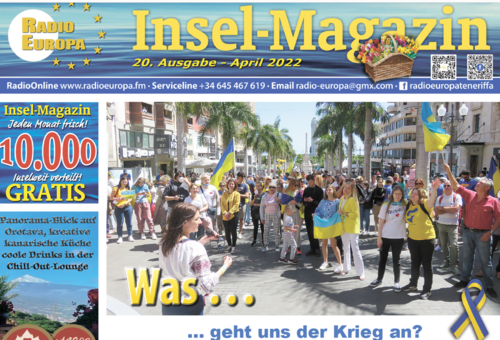 Seit Mittwoch wird das neue Insel Magazin auf Teneriffa verteilt. Dieses Mal mit einem Osterspecial, vielen Veranstaltungstipps und jede Menge Informativem. Lesen Sie, was uns der Krieg angeht und ein Interview mit Betroffenen ist ebenfalls in der neuen Ausgabe.