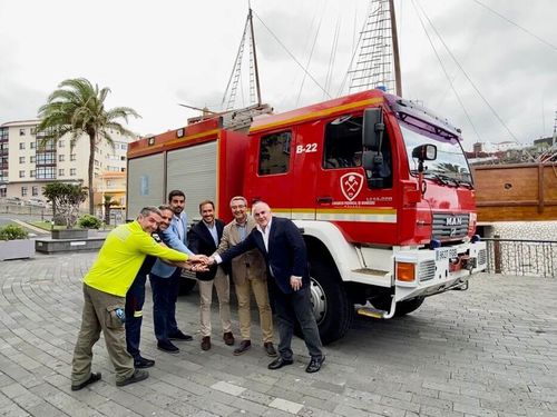 Die Feuerwehr aus Málaga hat den Kollegen auf La Palma ein Allrad-Feuerwehrauto gespendet, damit sie angesichts der Waldbrandsaison besser vorbereitet sind. Von November bis Januar dieses Jahres waren rund zwei Dutzend Feuerwehrkollegen aus Málaga auf La Palma im Einsatz um beim Asche-Räumen zu helfen.