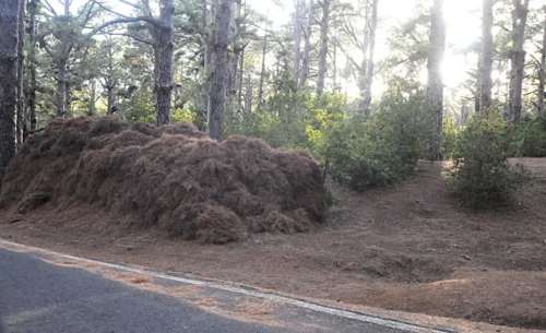 Angesichts des Waldbrandes kam wieder einmal die Diskussion auf, ob es nicht besser sei, die trockenen Fichtennadeln vom Waldboden zu entfernen. Der anerkannte Botaniker, Wolfredo Wildpret, sagt eindeutig Nein. Und auch der Waldingenieur Ferran Dalma-Roviera schließt sich dieser Meinung an, denn die Pinocha, wie die Nadeln genannt werden, fängt Regenwasser auf und gibt es langsam an den Boden ab. Sie schützt den Boden vor dem Austrocknen und ist ein wichtiger Dünger für den Waldboden. Man kann aufräumen, sollte aber nicht alles entfernen.