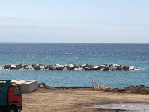 An der Playa de Valleseco, die derzeit am Rande der Innenstadt von Santa Cruz neu gebaut wird, wurde mit dem Bau der sanitären Anlagen begonnen. Zwei von vier Anlegern, die als Sonnenterrasse dienen sollen, wurden bereits fertiggestellt. Um die riesigen Betonquader im Meer zu platzieren, auf denen später Liegeflächen entstehen sollen, ist ein 400 Tonnen schwerer Kran im Einsatz. Er ist fest in der Erde verankert worden.
