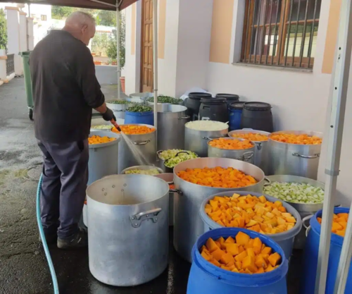 Im Stadtteil La Florida in La Orotava kamen am Freitag 125 Anwohner zusammen, um gemeinsam die Zutaten für den traditionellen Eintopf zu schälen, zu schneiden und vorzubereiten. 1.200 Kilogramm Kürbis, je 700 Kilogramm Kartoffeln und Kohl, 100 Kilogramm Süßkartoffeln, 75 Maiskolben, 600 Kilogramm Speck und Rippchen, 150 Kilogramm Huhn und 25 Kilogramm Petersilie wurden gekocht und am Samstagnachmittag an alle Festbesucher verteilt.
