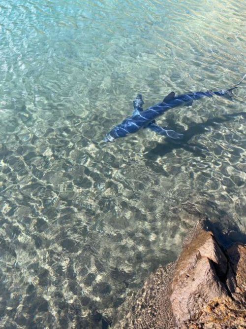 Am Samstag ist an der Playa de las Teresitas in Santa Cruz ein Hai aufgetaucht. Er schwamm von der Südseite in den Strandbereich und verließ ihn wieder über die Nordseite. Das Tier hielt sich hauptsächlich im tiefen Wasser auf. Er wurde von den Sicherheitskräften des Roten Kreuzes gesehen. Die Lokalpolizisten und Badegäste wurden informiert, der Strand allerdings nicht gesperrt. Schlimmer war das Auftauchen von Quallen, die im Laufe des samstags für die gelbe und später sogar die Rote Flagge gesorgt haben.