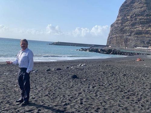 Der Präsident von Kantabrien, Miguel Ángel Revilla, war bereits auf La Palma angereist, als das geplante Treffen der Provinzpräsi-denten, des spanischen Ministerpräsidenten Pedro Sánchez und des Königspaars wegen des Einmarsches russischer Truppen in der Ukraine abgesagt wurde. Bevor Revilla ab-reiste, teilte er seine Impressionen am Strand von Puerto de Tazacorte über soziale Netzwerke. „Ich bin hier am Strand von Tazacrote, mit seinem schwarzen Vulkansand und nutze die Gelegenheit um mich mit wunderbaren Menschen zu unterhalten“.