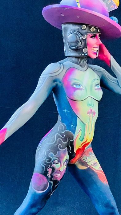 Die Bodypainterin Laura Colangelo aus Italien nahm als Botschafterin des Karnevals von Las Palmas 2023 am 25. World Bodypainting Festival in Klagenfurt teil und gewann mit der Drag Queen Vintash und ihrem Team den ersten Preis.