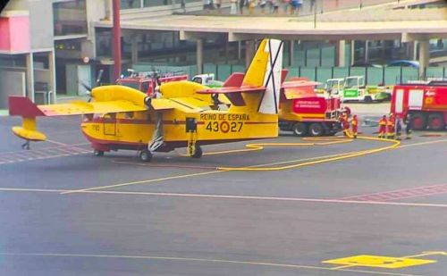Noch am Samstagabend kam das erste Löschflugzeug des Militärs auf La Palma an und schloss sich den Löscheinsätzen an. Am Sonntag kam noch ein zweites Flugzeug an, der vom spanischen Minsterium für den ökoligischen Übergang nach La Palma entsandt wurde. SV-AR Foto:MoisésPérez