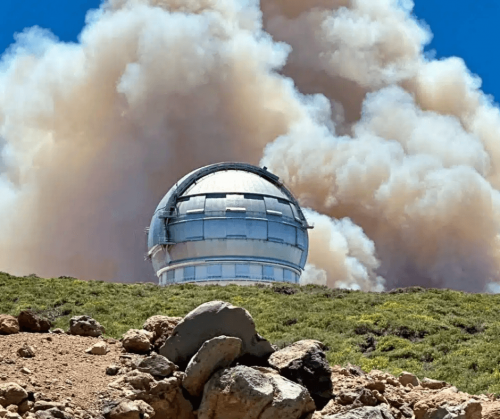 Die Mitarbeitenden des Observatoriums Roque de Los Muchachos werden vorsichtshalber evakuiert, weil sich die Flammen bedrohlich nähern. Ein Techniker wird vor Ort bleiben, um den Einsatzkräften wenn nötig zu helfen.
