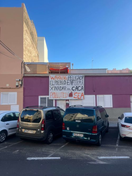 In El Médano hingen am Sonntagmorgen plötzlich an zahlreichen Hauswänden, Balkonen und Fenstern Protestplakate, die vor der schlechten Wasserqualität vor der Küste warnten. Täglich werden tausende Liter ungeklärtes Wasser an der Küste in den Atlantik geleitet. Die Aktivisten fordern eine natürliche Kläranlage, die das Wasser vor der Einleitung filtert.