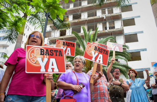 Rund 150 Anwohner, Geschäftsleute und Hoteliers protestierten am Dienstag friedlich vor dem Iders-Gebäude in Puerto de la Cruz. Sie forderten, dass der Schandfleck endlich weg muss. Bürgermeister Marco González stellte sich den Menschen persönlich und musste gleich an mehreren Fronten Rechenschaft abgeben. Einerseits die Anwohner, die das Gebäude abgerissen haben wollen und Eigentümer, die ihren Besitz zurück möchten. Der Bürgermeister versprach alles zu tun, was rechtlich möglich ist, um eine Lösung zu finden.
