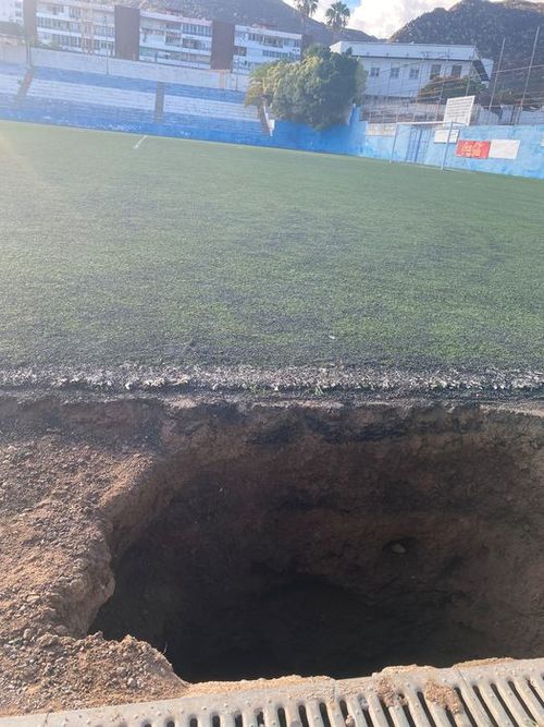 Riesenloch auf dem Fußballplatz