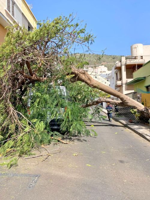 Wie aus heiterem Himmel stürzte am Montag ein Baum in der Calle Poeta Tabares Bartlet mitten auf der Straße um. Die Lokalpolizei forderte die Feuerwehr zum Räumen an. Die Straße war vorübergehend gesperrt.