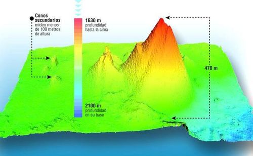 Eine Expedition des Ozeanographischen Instituts zum Volcán de Enmedio hat ein erstes Modell geliefert. Der Vulkan ist rund 470 Meter hoch und hat seinen Sockel in 2.100 Meter Tiefe. Anomalien der Wassertemperatur in der unmittelbaren Umgebung weisen auf hydrothermale Aktivitäten hin. Mehr dazu können Sie in der aktuellen Aprilausgabe des Insel Magazins nachlesen.