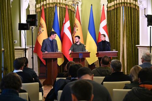 Am Donnerstag hat Spaniens Ministerpräsident Pedro Sánchez in Begleitung seiner dänischen Amtskollegin Mette Frederiksen, Präsident Volodimir Selenski in Kiew besucht. Nach einem Zwischenstopp in dem Vorort Bordianka, in dem zahlreiche tote Zivilisten gefunden wurden, beteuerte er erneut die Solidarität Spaniens mit der Ukraine. Er kündigte die Lieferung von 200 Tonnen mit militärischem Material an. Sowohl Verteidigungs- als auch Angriffswaffen sollen geliefert werden. Zudem wurden forensische Spezialisten aus Spanien eingesetzt, um Kriegsverbrechen zu dokumentieren. Spanien steht an sechster Stelle der Länder, die ukrainische Flüchtlinge aufgenommen haben. Insgesamt 137.000 Menschen – davon leben auch viele auf den Kanarischen Inseln.