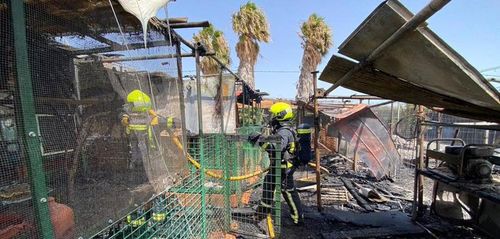 Die Feuerwehr von Arinaga und Telde kam am Montag auf einer Finca in Las Rosas Viejas in Agüimes zum Einsatz. Dort brannte ein Schuppen und ein kleines Haus. Aus dem brennenden Stall wurden mehrere Hunde der Rasse Presa Canario und Vögel gerettet. Um den Brand zu löschen benötigte die Feuerwehr 10.000 Liter Wasser.