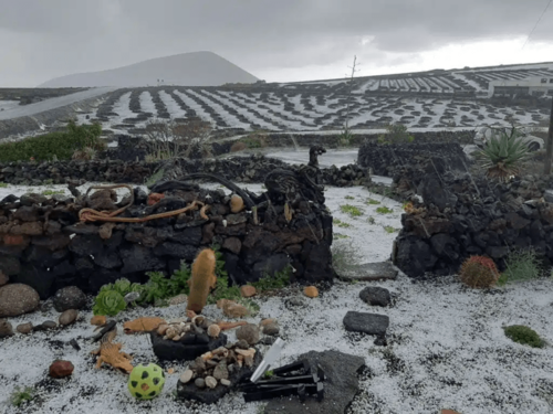 Am Samstag passierte ein Tief die Kanarischen Inseln und brachte auf Lanzarote einen Hagelschauer, der vorübergehend die Lavalandschaft mit einer weißen Pracht überzog. Vor allem im Nationalpark Timanfaya. Auf La Palma, Teneriffa und Gran Canaria sank in der Nacht zum Sonntag die Schneefallgrenze auf 1.600 Meter.