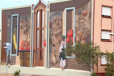 Im Stadtteil Las Nieves gibt es seit Mittwoch große Bildwände mit Bildern der Landwirtschaft.