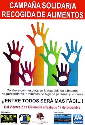Die lokale Polizei von Arona wird jetzt bis einschließlich zum 17. Dezember wieder die Lebensmittelspenden für die Bedürftigen sammeln. Diese Aktion gibt es schon länger. Die Stände finden Sie auch in den Touristik Gebieten wie Los Cristianos.