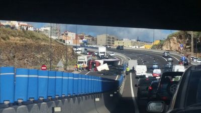 Auf der TF2  gab es am Montag bei der Ausfahrt zum Alcampo von Santa Cruz einen spektakulären Unfall. Dort war ein Sattelzug umgekippt, welcher leere Plastikkisten geladen hatte. Alle drei Fahrbahnen waren daher lange blockiert. Dadurch gab es gleich überall Staus. Der Fahrer kam mit dem Schrecken und blauen Flecken davon.