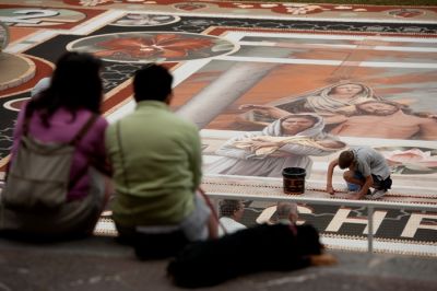 Wie jetzt der Verband der Teppichleger von La Orotava berichtet, wird es jedes Jahr schwieriger, den entsprechenden Sand aus dem Naturschutzpark Teide zu bekommen. Hier gibt es immer mehr neue Auflagen und Bestimmungen. Allein für den 850 qm großen Teppich zum Fronleichnamsfest vor dem Rathaus werden 1500 Kg von diesem besonderen Sand benötigt. PG-AR