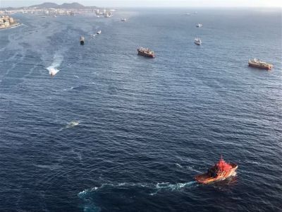Wie schon mehrfach von der Presse und in den Nachrichten gemeldet, wurden am Samstag nach dem Unfall der ARMAS Fähre an der Mole des Hafens Lord Nelson von Gran Canaria dort die naheliegenden Badestrände vorsichtshalber gesperrt. Der Ölteppich, welcher durch die rund 63.000 Liter Diesel entstanden ist, war am Sonntag immerhin rund 12 Km lang und 3 Km breit. Immer noch sind Bergungstrupps dabei den Rest aufzusaugen. Solange bleiben die Sperrungen bestehen. PG-AR