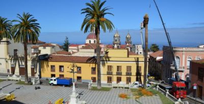 Am Samstag sägten Arbeiter des städtischen Gartenamtes die sieben am Rathausplatz von von La Orotava befindlichen Palmen ab. Bereits seit Jahren schon wurden diese Palmen beobachtet und untersucht, da sie einen Schädlingsbefall hatten. Alles was unternommen wurde, half jetzt nichts mehr und bevor eine oder die andere Palmkrone herunterfällt, entschloss man sich jetzt zu diesem Schritt. PG-AR