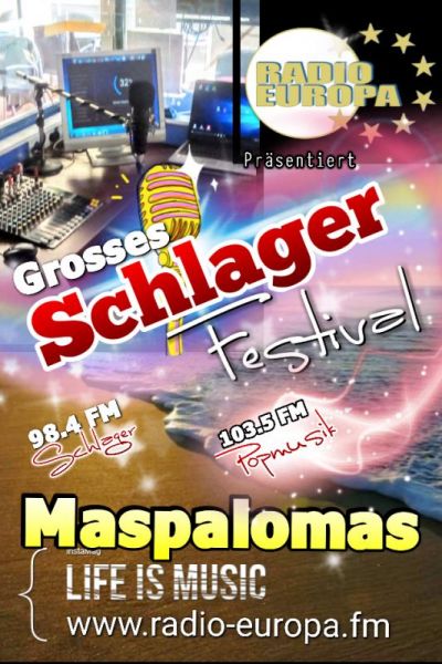 Radio Europa Gran CANARIA Presentiert " Das Grosse Schlager Festival " Und wir suchen noch mehrere Künstler die ihre Chance nutzen wollen ,in einer LIVE SENDUNG aufzutreten. Melden Sie sich an in Bar MELODIES C.C.CITA oder rufen Sie an Tel : 0034 634 303 228 Anmeldungen bis Ende Februar !!! A.Jan Lievaart Studio & Regional Leiter Radio Europa Gran Canaria