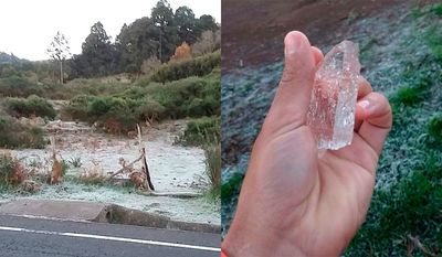 Gegen 8 Uhr am Mittwoch waren die Anwohner von La Palma nicht schlecht erstaunt, denn auf einer Höhe von rund 900 Metern gab es bei San Antonio del Monte bei Garafía vier Grad Minus ! Alles, was feucht war oder Wasser, war dort gefroren. Die Anwohner fanden es lustig und teilen die Fotos in den sozialen Medien. Auch die Bauern fanden es gut, den manche Bäume und Pflanzen brauchen auch mal den Frost. PG-AR