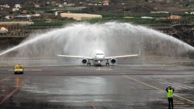 Am Samstag wurde auf dem Flughafen von La Palma die Wintersaison eröffnet. Der erste Airbus 320 mit 180 Fluggästen kam dort aus Hamburg an. Der EUROWINGS Flieger wird nun regelmäßig hierher fliegen. Zum Empfang gab es von der Flughafenfeuerwehr eine Dusche. In diesem Winter gibt es 15% mehr Fluggäste auf der Insel.