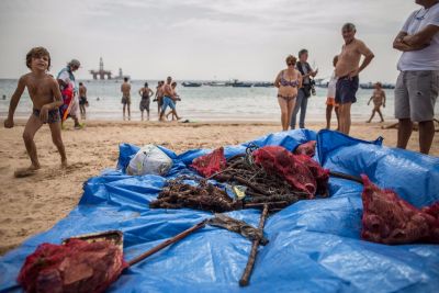 An dieser nahmen in ganz Spanien 30 Gemeinden teil. Von 9 Uhr vormittags bis 14 Uhr am Nachmittag waren hier viele Freiwillige zu Gange, Unrat aus dem Atlantik zu beseitigen. PG-AR