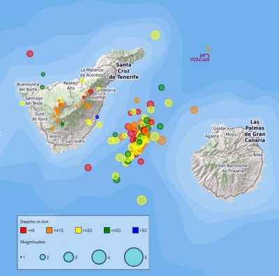 Das seismologische Institut INVOLCAN berichtet auch weiterhin von Erdstößen unter den Inseln oder dem Atlantik. Es gab hier seit dem 29. April bis gestern bereits über 200 solcher Erdbewegungen. Der stärkste Erdstoß wurde mit 2,5 auf der Richterskala gemessen. Meist gibt es diese in Tiefen von 30 bis 40 Km. PG-AR