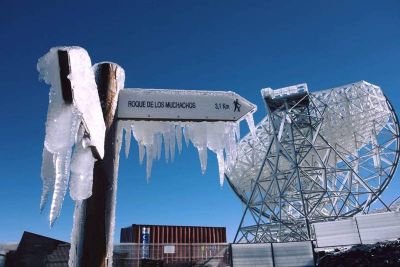 Noch vor Wintereinbruch wurden auf dem Roque de los Muchachos die Bauarbeiten für das neue Telescop, dem “Red de Telescopios Cherenkov“ begonnen. Diese mussten mehrfach wegen Schnee und Eis unterbrochen werden.