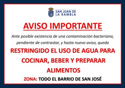 Am Dienstag gab die Gemeinde San Juan de la Rambla im Norden Teneriffas für den Bereich San José eine Warnung heraus. Hier geht es um den Frischwasserverbrauch. Man vermutet dort derzeit Bakterien im Wasser. Daher wurde den Anwohnern geraten, für Speisen nur Flaschenwasser zu nutzen. PG-AR