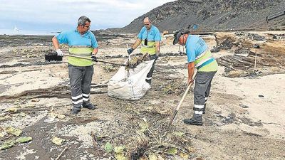 Die lokale Stadtreinigung von Las Palmas hat jetzt bei El Confital rund 8000 Kg an Unrat und angespülten Algen und Seetang am dortigen Strand entfernt. Dies war hier durch den hohen Wellengang angespült worden. PG-AR