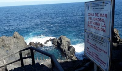 Der Strand “El Charco de la Laja“ im Gemeindegebiet von San Juan de la Rambla ist ein Naturschauspiel vom Feinsten. Aber genau dies macht ihn so gefährlich. Dort gibt es viele Wellen und auch grobe Felsen. Selbst für geübte Schwimmer ist die Küste eine Herausforderung. Erst vor zwei Wochen ertranken dort wieder zwei Menschen. Auch der Zugang ist schon Abenteuerlich. Große Warnschilder sollen auf die Gefahren hinweisen. Diese sollte man auch beachten. PG-AR