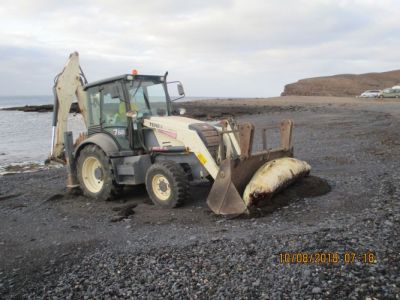 An der Südküste von Fuerteventura zwischen Tarajalejo und La Lajita wurde am Freitag ein toter Pottwal der Familie “cachalote pigmeo“ (Kogiabreviceps) gefunden. Die Einsatzkräfte bargen das Tier, dies wurde dann zur weiteren Untersuchung in die Universität von Gran Canaria weitergeleitet. Die Bergung erfolgte in Zusammenarbeit mit dem Naturschutz und dem dortigen Oasis-Park. PG-AR