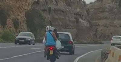 Gleich drei Personen auf einem Motorrad wurden am Montag, von einem Autofahrer gefilmt. Die mittlere Person trug keinen Helm und zu allem Überfluss hatten die Drei auch noch Einkaufstüten dabei. Sie waren von San Vicente in Richtung Icod de los Vinos unterwegs. Ganz schön überladen! Selbst wenn keine Polizei in der Nähe ist, muss man heutzutage damit rechnen, aufgezeichnet zu werden. Zu dumm für kleine Verkehrssünder!