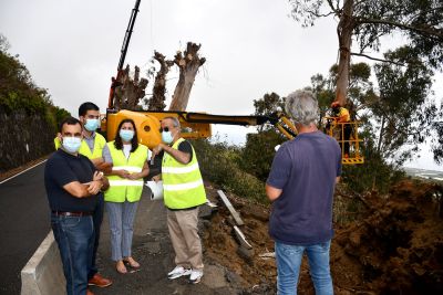 Auf der Landstraße LP-206 zwischen Polvacera und Puente Roto stürzte ein Eukalyptusbaum um. Dabei wurde auch eine Mauer beschädigt. Auf einer Länge von 200 Metern wurde die Straße beschädigt. Die Inselregierung will die Mauer erneuern und vier weitere Eukalyptusbäume vorsorglich fällen. Die Straße bleibt bis zum 18. September um 18 Uhr gesperrt.