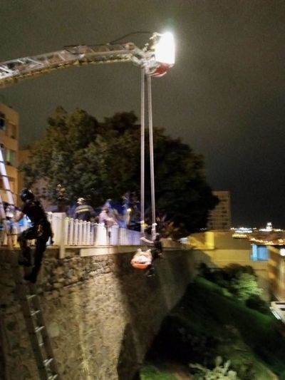 Im Stadtteil Escaleritas in Las Palmas ist Mittwochnacht ein Mann aus unbekannten Gründen eine Mauer hinuntergestürzt. Um ihn zu retten, musste die Feuerwehr mit einem Löschzug anrücken. An der ausgezogenen Kranleiter konnte eine Trage befestigt und der Mann so zurück auf die Straße gehoben werden. Der Rettungsdienst 112 brachte ihn sofort in ein Gesundheitszentrum.