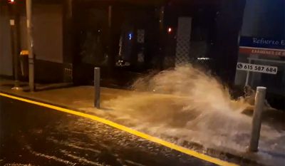 Auf der Avenida Islas Canarias in Santa Cruz kam es in der Nacht zum Sonntag gegen 2 Uhr zu einem Rohrbruch. Gewaltige Wassermassen überschwemmten die Straße sowie die nahegelegene Plaza de la Paz.
