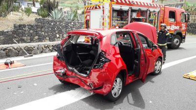 Die Feuerwehr kam auch zum Einsatz, als am Montagmittag ein PKW frontal mit einem LKW zusammenstieß. Der Unfall ereignete sich im Ortsteil Las Cruces in Garachico auf der TF-42. Dieses Mal war die Feuerwehr von Icod de los Vinos zur Stelle. Sie mussten den eingeklemmten Fahrer des PKWs über die Heckklappe aus dem Auto befreien. Beide Unfallbeteiligten wurden glücklicherweise nur leicht verletzt ins Nordkrankenhaus gebracht.