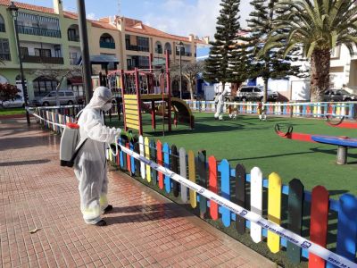 Im Süden haben sich jetzt die Gemeinden Arona, Adeje und Guia de Isora zusammengeschlossen. Derzeit werden die Gemeinden nach und nach desinfiziert und gereinigt. Hier hilft das Militär mit. Es sind Bushaltestellen, Apotheken und Supermärkte auf dem Plan sowie die Touristik Zentren.