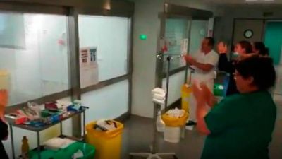 Das Personal des Gesundheitswesens im Hospital von Puerto del Rosario applaudierte am Sonntag einem Patienten. Dieser hatte sich vom Corona Virus erholt und konnte dort von der Intensivstation auf die normale Station verlegt werden.
