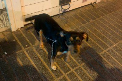 Jetzt wird in den sozialen Medien nach dem Besitzer gesucht, da der Hund keinen Chip hat.