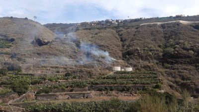 Im Barranco Las Angustias brach am Mittwochnachmittag ein Feuer aus. Feuerwehrleute bekämpften die Flammen am Boden und ein Hubschrauber aus der Luft. Inzwischen gilt der Brand als „unter Kontrolle“. Die Einsatzkräfte kühlen derzeit noch das Gelände.