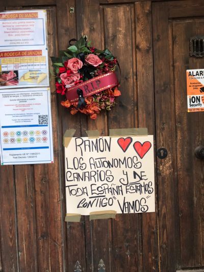 Der Unternehmer Ramón Catalán García muss seine Bar „La Bodega de Jandía“ aufgeben. Am 26.10. wird er schließen. Corona hat ihn in die Knie gezwungen. Aber er wollte nicht schweigend von der Bildfläche verschwinden. Er kündigte an, am Sonntag in schwarzer Trauerkleidung zum Hafen von Morro Jable zu gehen und dort dafür einzutreten, dass die Hilfen wenigstens die Selbstständigen erreichen, denen noch zu helfen ist. Er kritisiert konkret die Lokalpolitiker, die zu wenig für ihre Geschäftsleute getan haben und versprochene Hilfen, die nicht ankommen. Spontan hat er eine Welle der Solidaritätsbekundungen ausgelöst. Zahlreiche Anwohner haben ihn in schwarzer Trauerkleidung begleitet.