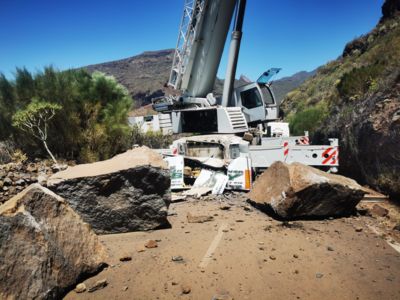 Ein gefährlicher Felsbrocken sollte am Montag an der Straße zwischen Tamaimo und Chio bei Straßenarbeiten gesichert werden. Doch als der Bautrupp gerade mit der Arbeit beginnen wollte, brach der Brocken ab und stürzte auf die Straße. Er beschädigte einen Bagger. Der Baggerführer wurde glücklicherweise nur leicht am Knöchel verletzt.