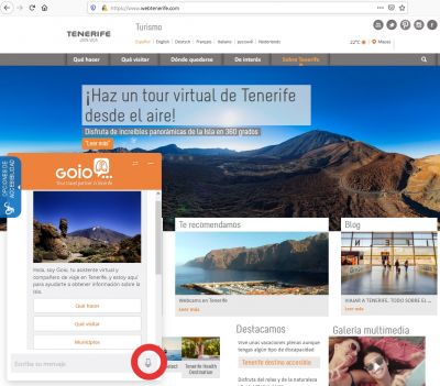 Auf der Webseite des Tourismusamtes von Teneriffa berät ein virtueller Assistent Urlauber von Covid Fragen bis hin zu Restaurant Empfehlungen. Goio, wie der Assistent heißt, tritt in eine Wechselbeziehung mit den Interessenten, verwertet Feedback und lernt dazu. Im Moment spricht er Spanisch und Englisch. Zu finden ist er auf der webtenerife.com.