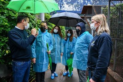 Am Donnerstag war bei Regen der Parlamentspräsident von La Rioja, Jesús María García, zu Besuch im Loro Parque. Der wissenschaftliche Direktor des Parks, Rafael Zamorra, führte den Politiker auch durch die Aufzuchtstation in La Vera. Dort leben auf einer Fläche von 30.000 Quadratmetern 4.000 Vögel von 350 verschiedenen Arten. In der Station wird an dem Erhalt vom Aussterben bedrohter Vogelarten gearbeitet.