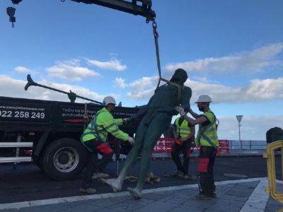 Die Statuen der Fürsten Romén und Tegueste wurden am Freitag in Candelaria in Sicherheit gebracht. Hoher Wellengang hat der Mauer und dem Gehweg an der Plaza de la Patrona de Canarias so zugesetzt, dass sie drohten abzustürzen. Deshalb wurden die Guanchenfürsten in Sicherheit gebracht. Die Bevölkerung ist aufgefordert, die Absperrung der Promenade zu respektieren. Es wird nach einer Lösung gesucht.