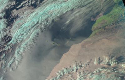 Aufgrund der schlechten Sicht mussten am Dienstag zehn Flüge abgesagt werden. Zwei Maschinen von Teneriffa und eine von Gran Canaria nach La Palma sowie die jeweiligen Rückflüge wurden storniert. Außerdem je zwei Hin- und Rückflüge von Teneriffa Nord nach El Hierro. Wie dicht die Sandwolken über dem Archipel hängen, zeigen auch beeindruckende Satellitenbilder aus dem All des spanischen Wetterdienstes Aemet.